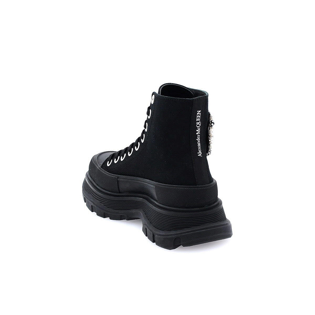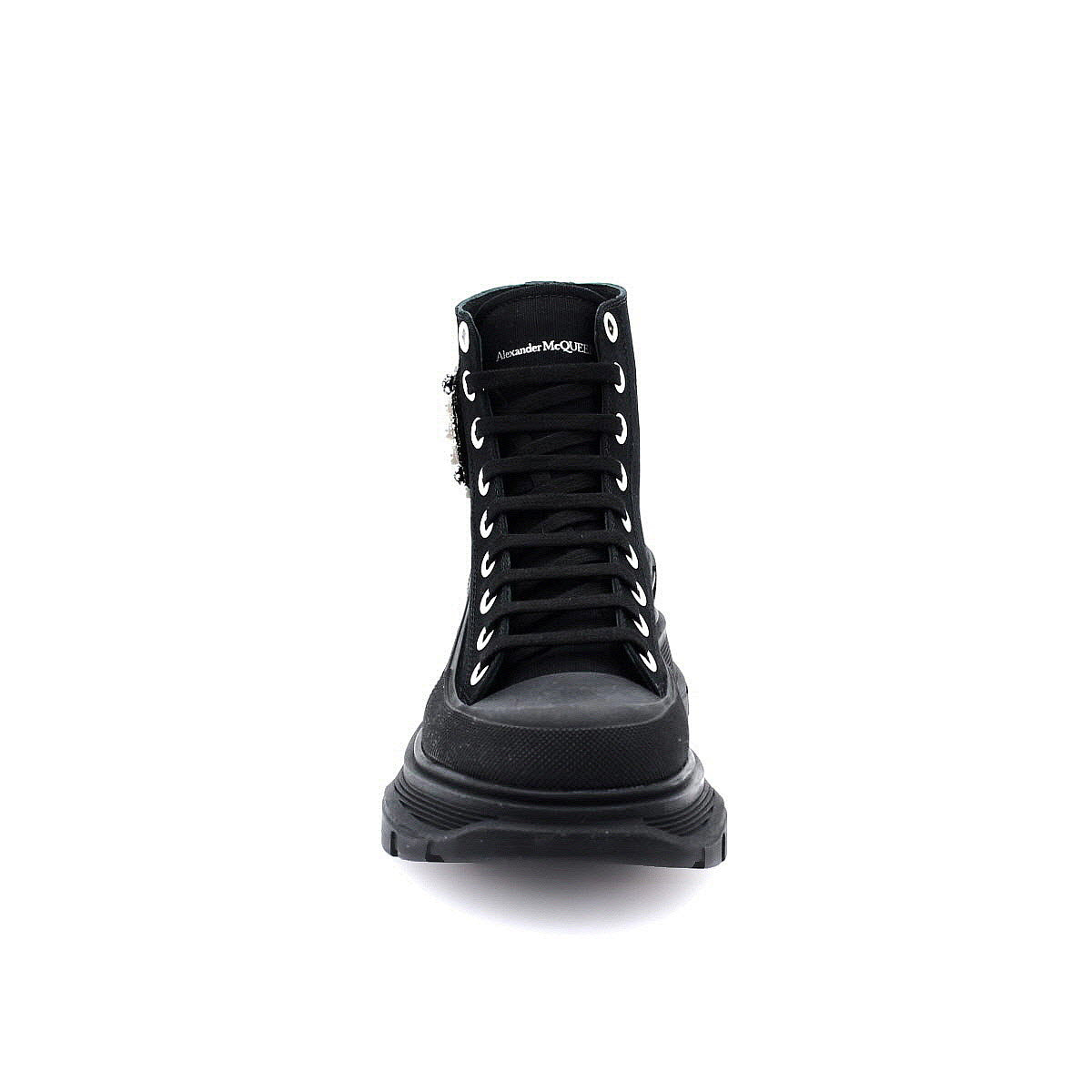 Ontdek de perfecte mix van elegantie en comfort met de Alexander McQUEEN® Ironie high-top sneakers. Deze canvas veterschoenen zijn versierd met een rijkelijk borduursel van parels, kristallen en imitatieparels en hebben een oversized, lichtgewicht rubberen buitenzool. De getextureerde rubberen neus en afwerking zijn voorzien van de kenmerkende ALEXANDER MCQUEEN® -look, terwijl de streep aan de achterkant een verfijnde finishing touch geeft.