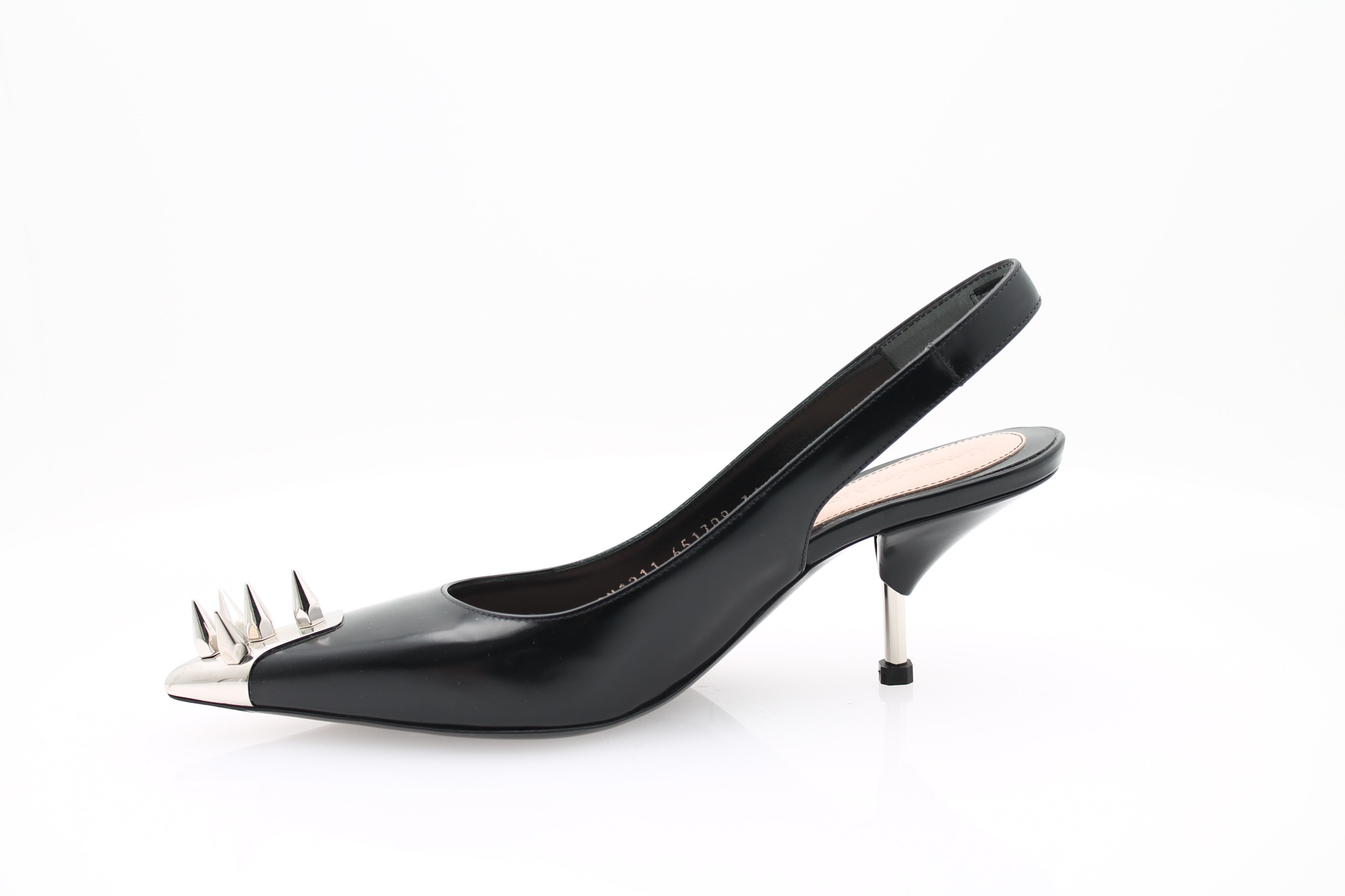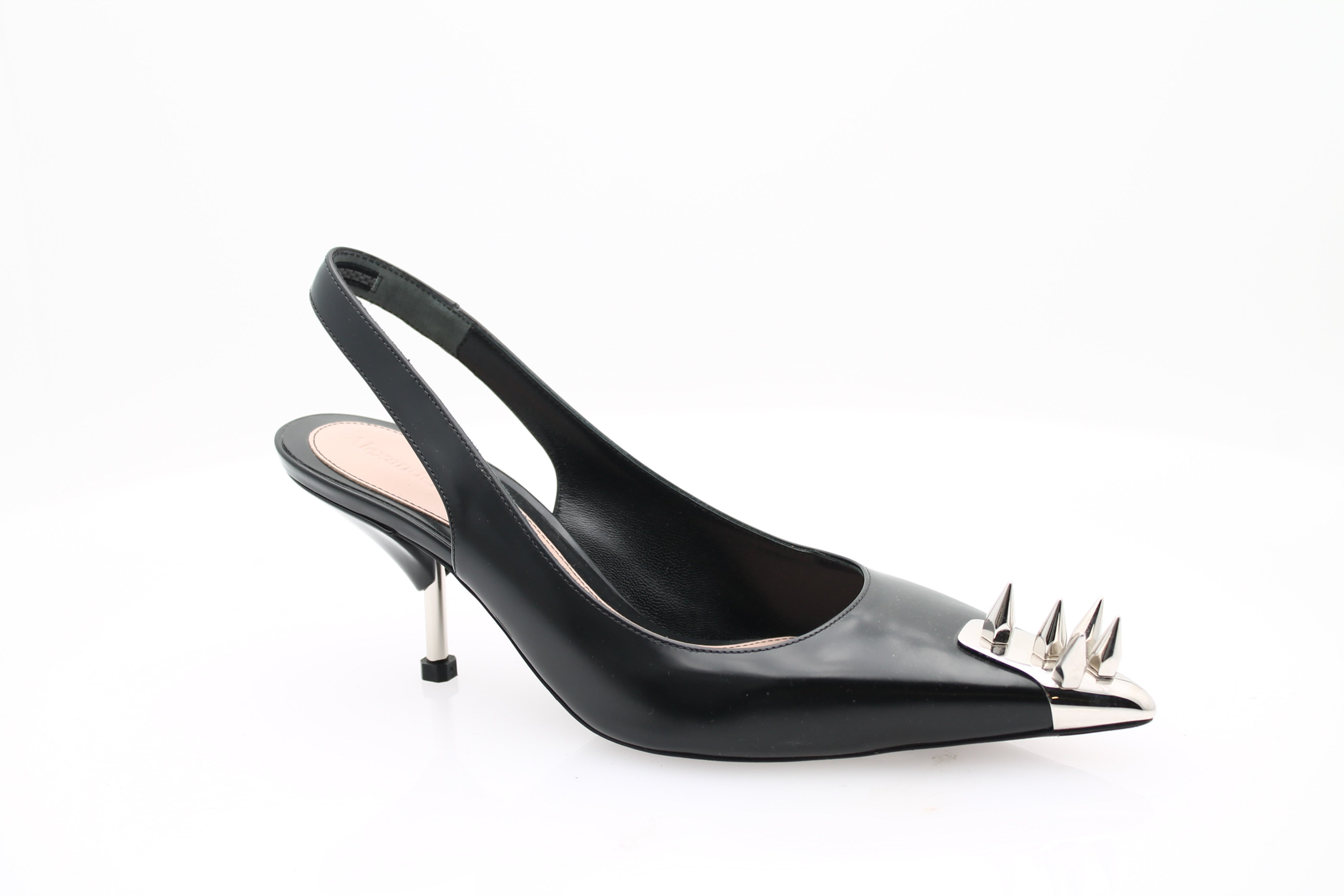 Ontdek de elegante ALEXANDER MCQUEEN - Punk Spike Sling pump met 6,5 cm hak in zwart/zilver.