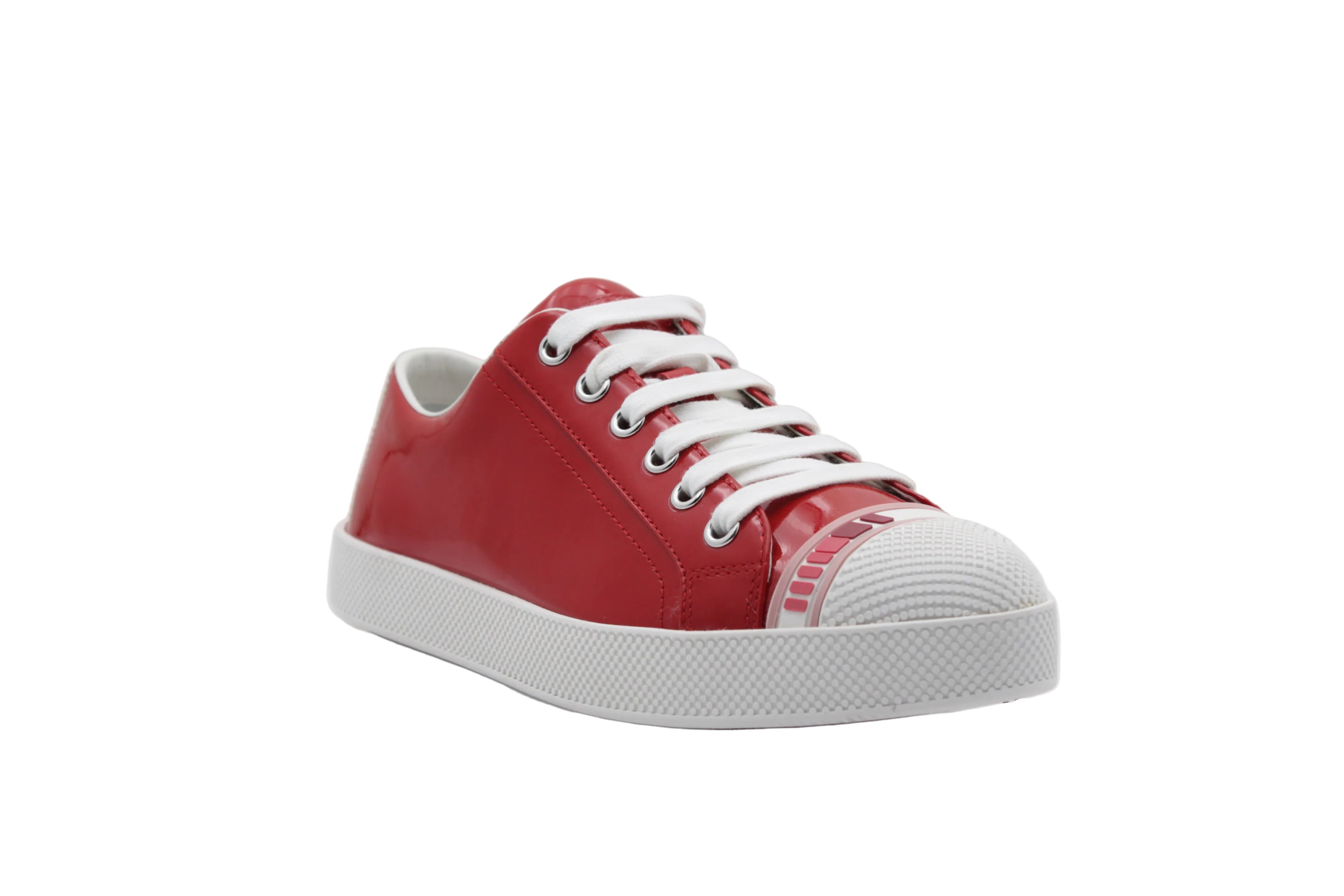 La Sneaker Classique Prada en cuir verni rouge incarne à la perfection le mariage entre élégance italienne et esprit urbain. Avec son design minimaliste et ses finitions impeccables, elle s’impose comme une pièce essentielle du vestiaire contemporain.