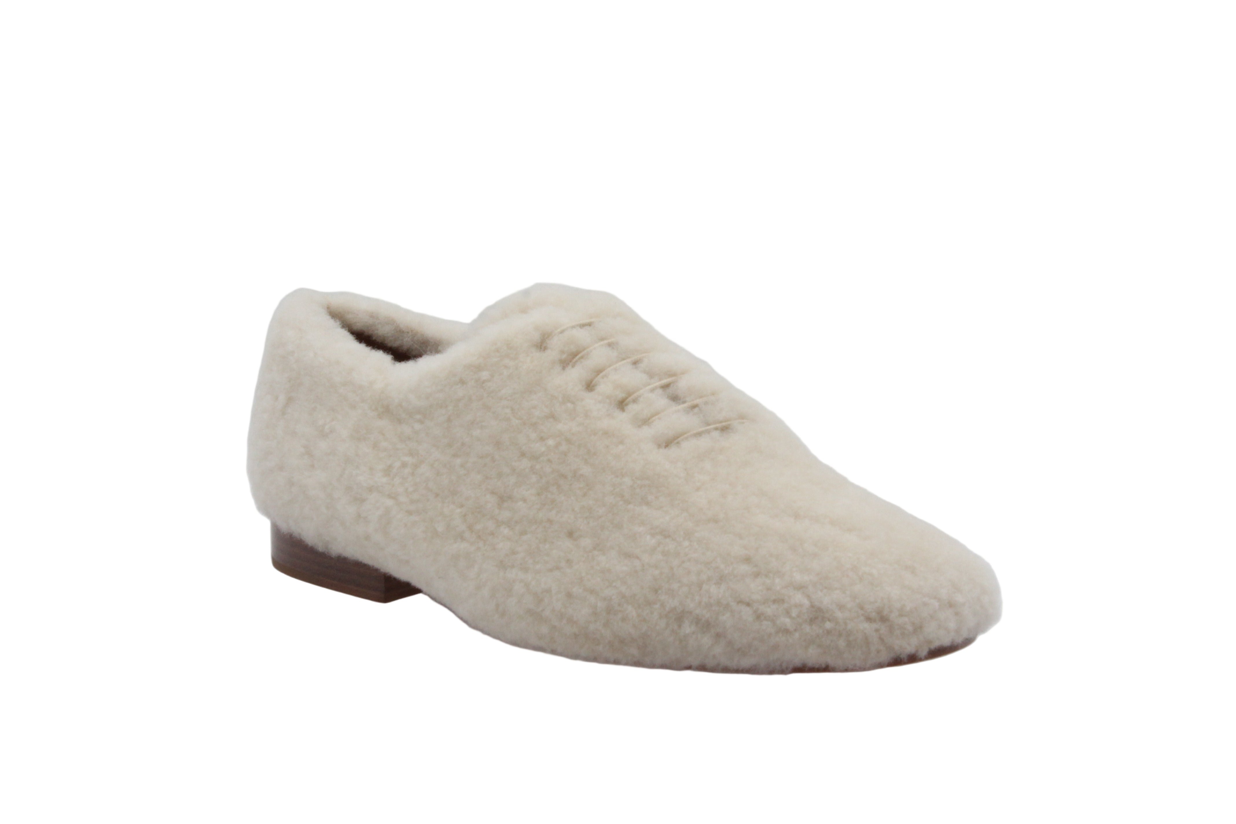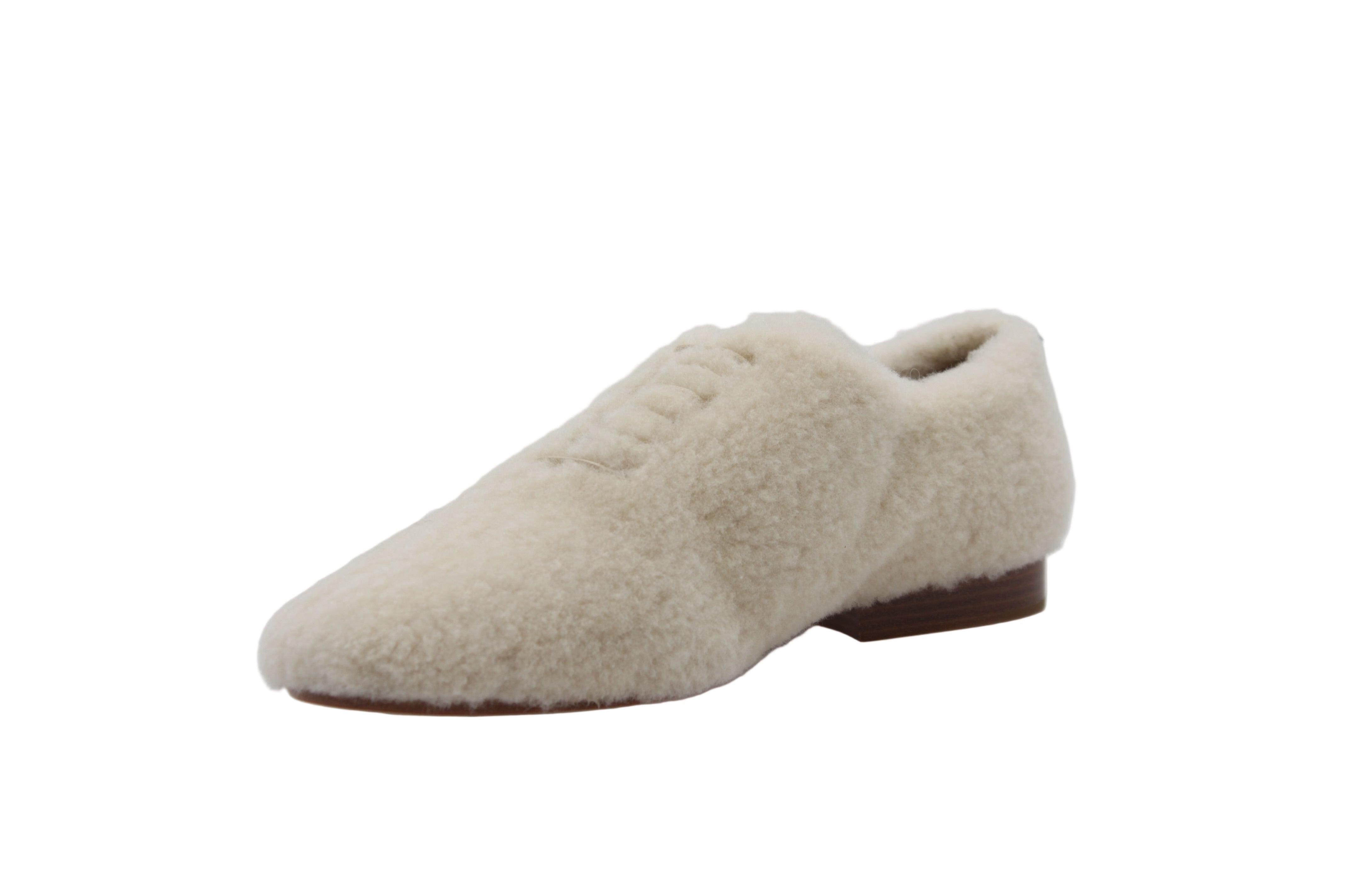 La Jessie Richelieu Blanc cassé de Chloé est une réinterprétation délicate et contemporaine d’un classique de la chaussure féminine. Avec son revêtement textile à effet laine de mouton, elle propose une allure douce et texturée qui attire immédiatement le regard. Ce modèle séduit par son style à la fois épuré et original, sa teinte blanc cassé subtile, et son esprit à mi-chemin entre confort cocooning et raffinement parisien. Les lacets fins, élégamment posés, renforcent le caractère intemporel de ce soulier revisité avec élégance.