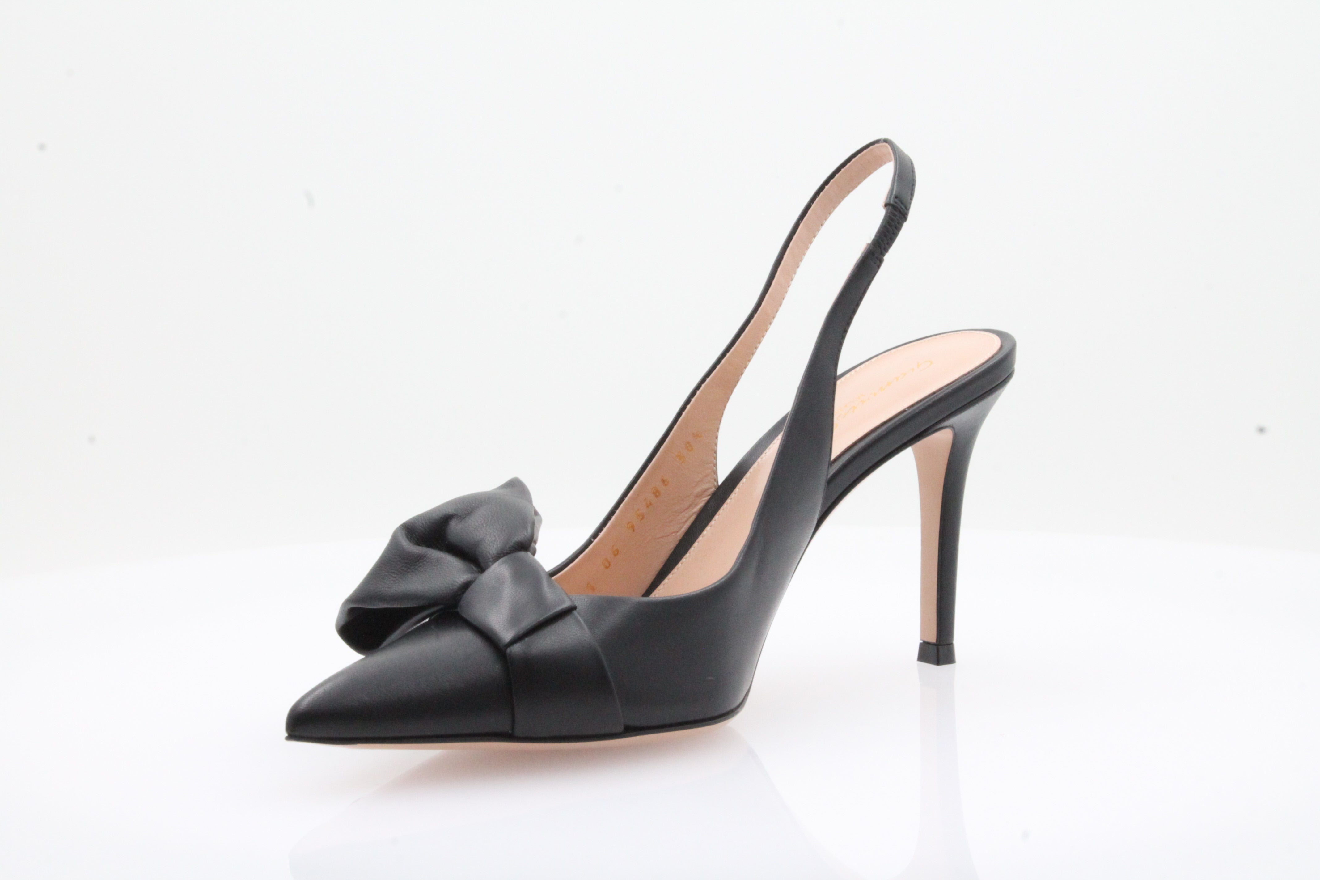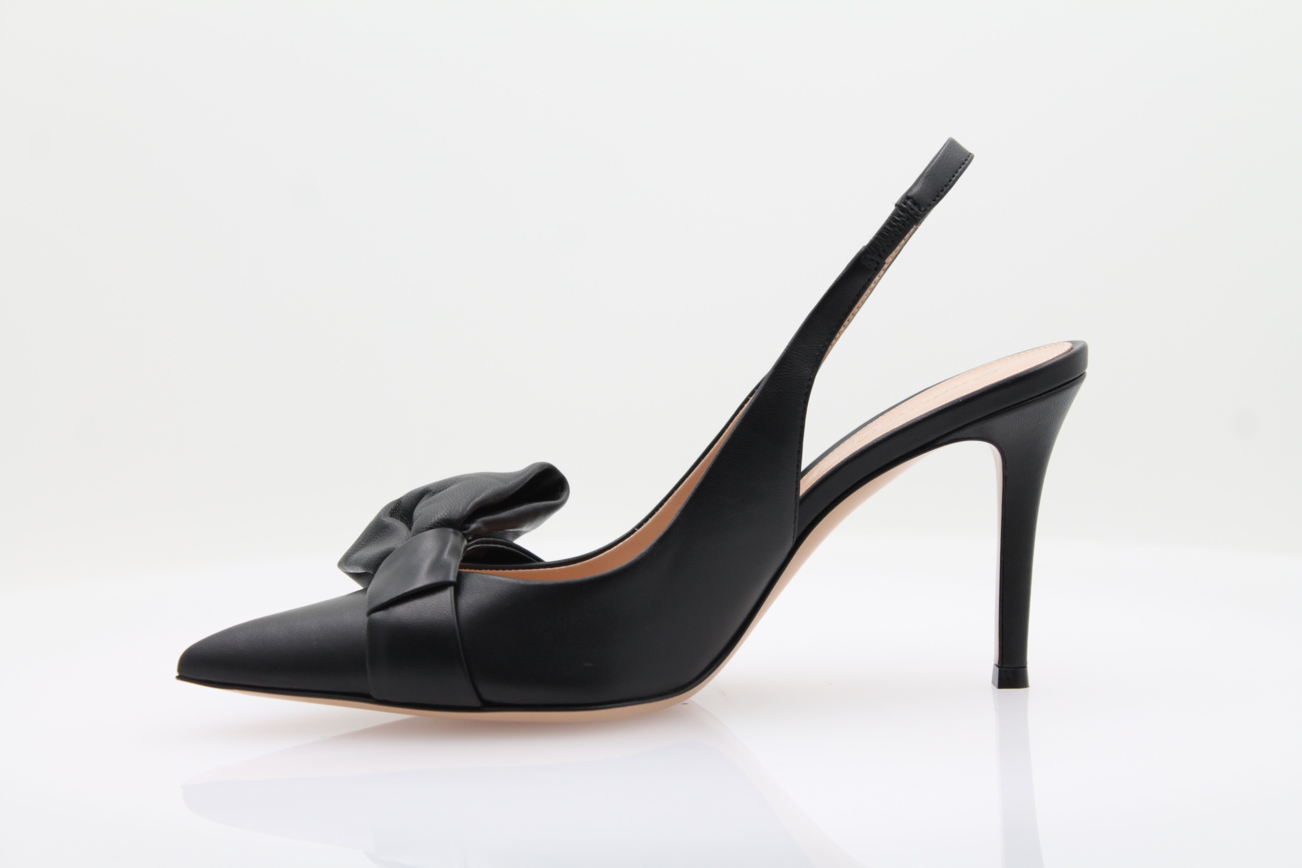 Doté d’une bride arrière qui maintient le pied avec légèreté, ce modèle associe élégance et stabilité. Son talon fin de 8,5 cm allonge naturellement la silhouette tout en restant confortable, fidèle au savoir-faire raffiné de la maison Gianvito Rossi.