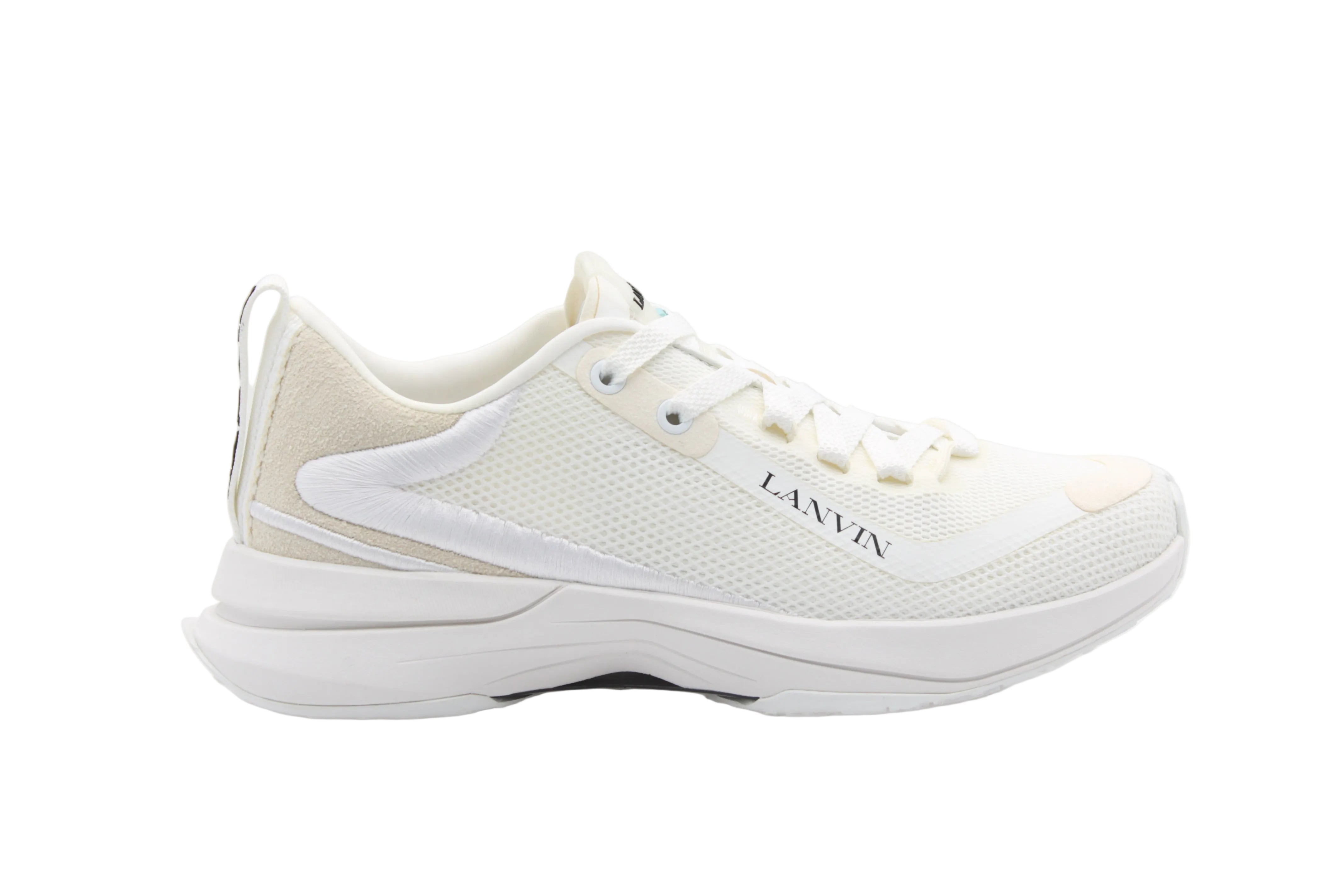 La Runner Sneaker de Lanvin revisite la basket sportive dans une version élégante et résolument moderne. Cette sneaker blanche de luxe, à la silhouette dynamique, allie performance visuelle et raffinement couture, signature de la maison Lanvin.