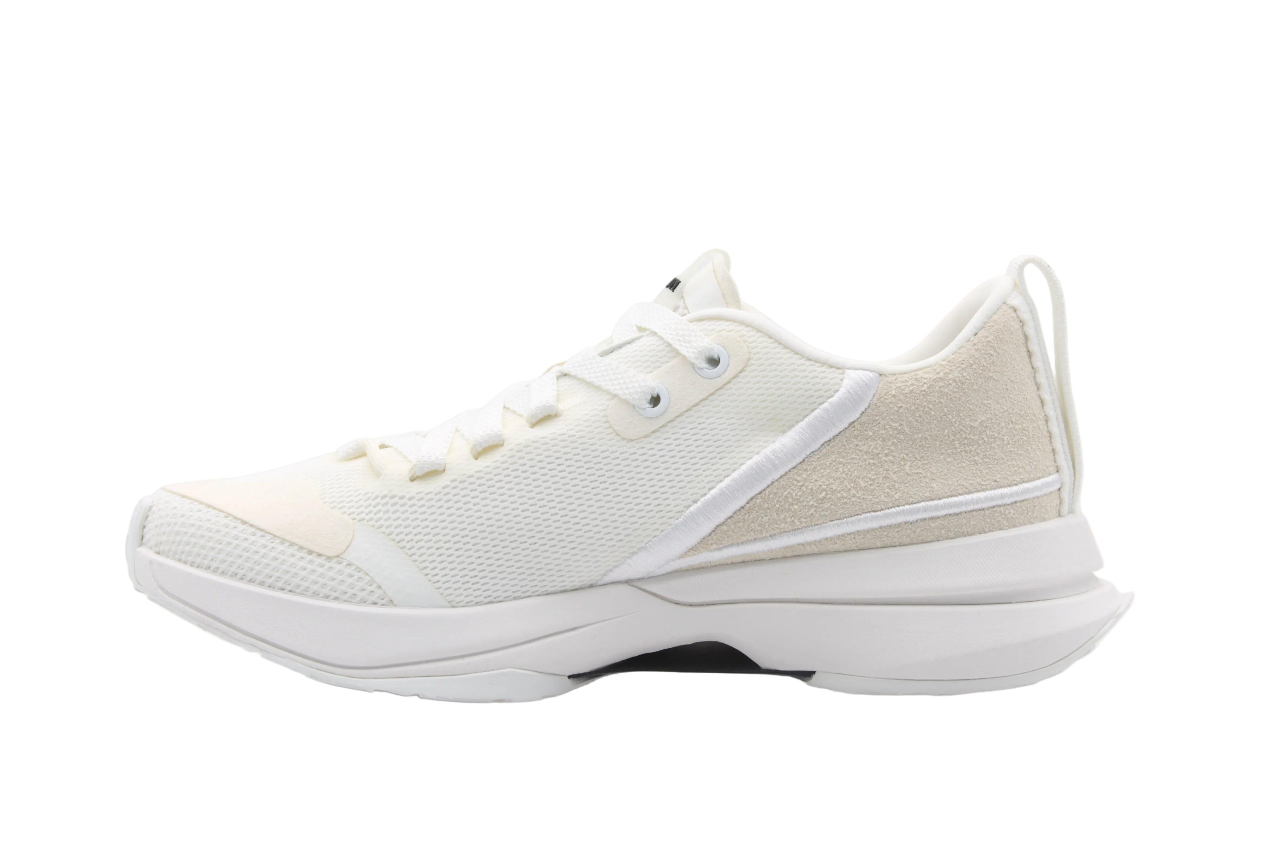 Confectionnée dans un mélange de textile technique et de cuir, cette basket blanche séduit par sa légèreté et son allure fluide. La tige en textile respirant assure un confort optimal, tandis que les empiècements en cuir apportent structure et sophistication à l’ensemble.