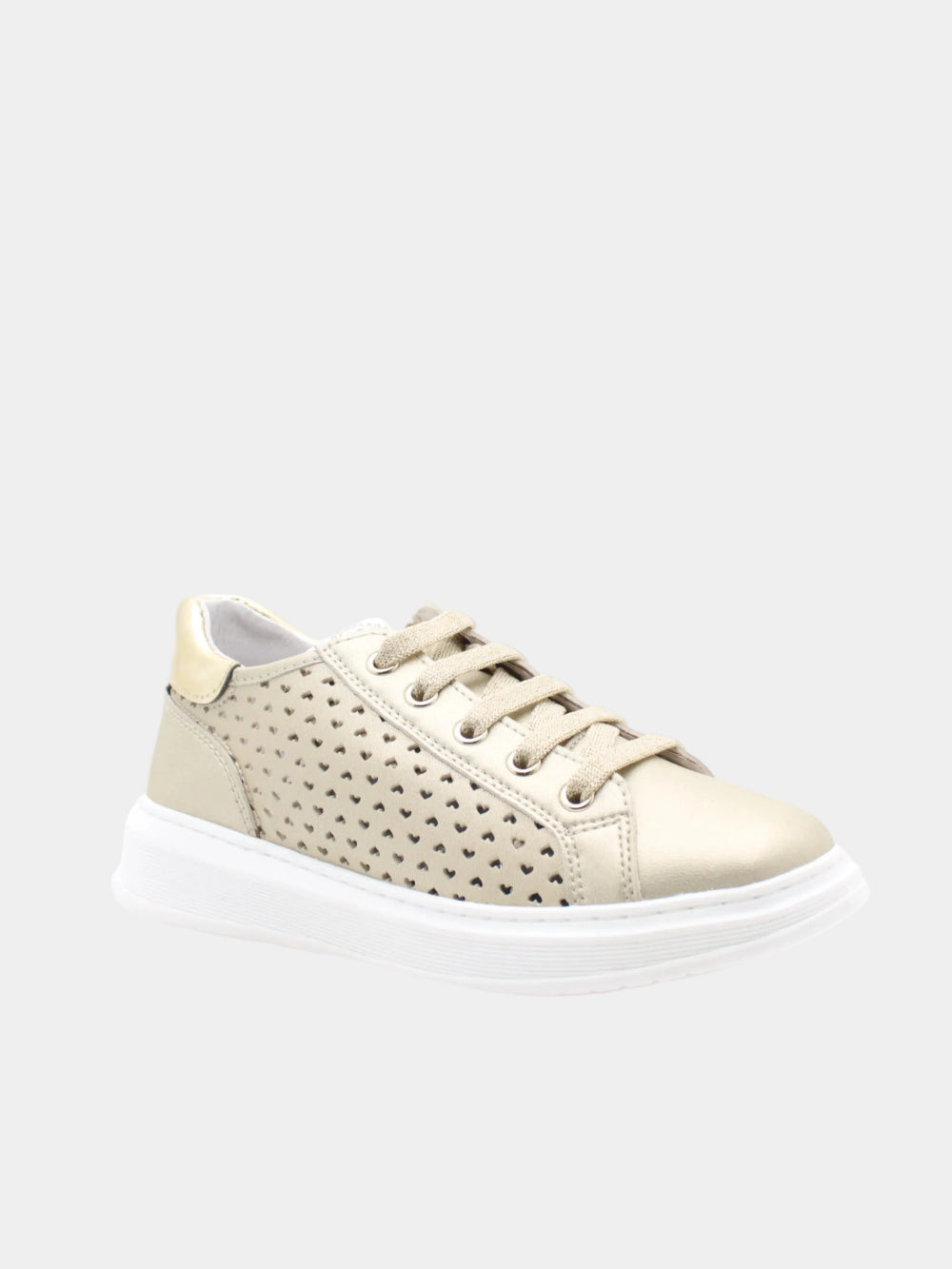 Détails charmants avec perforations en forme de cœurs sur les côtés.