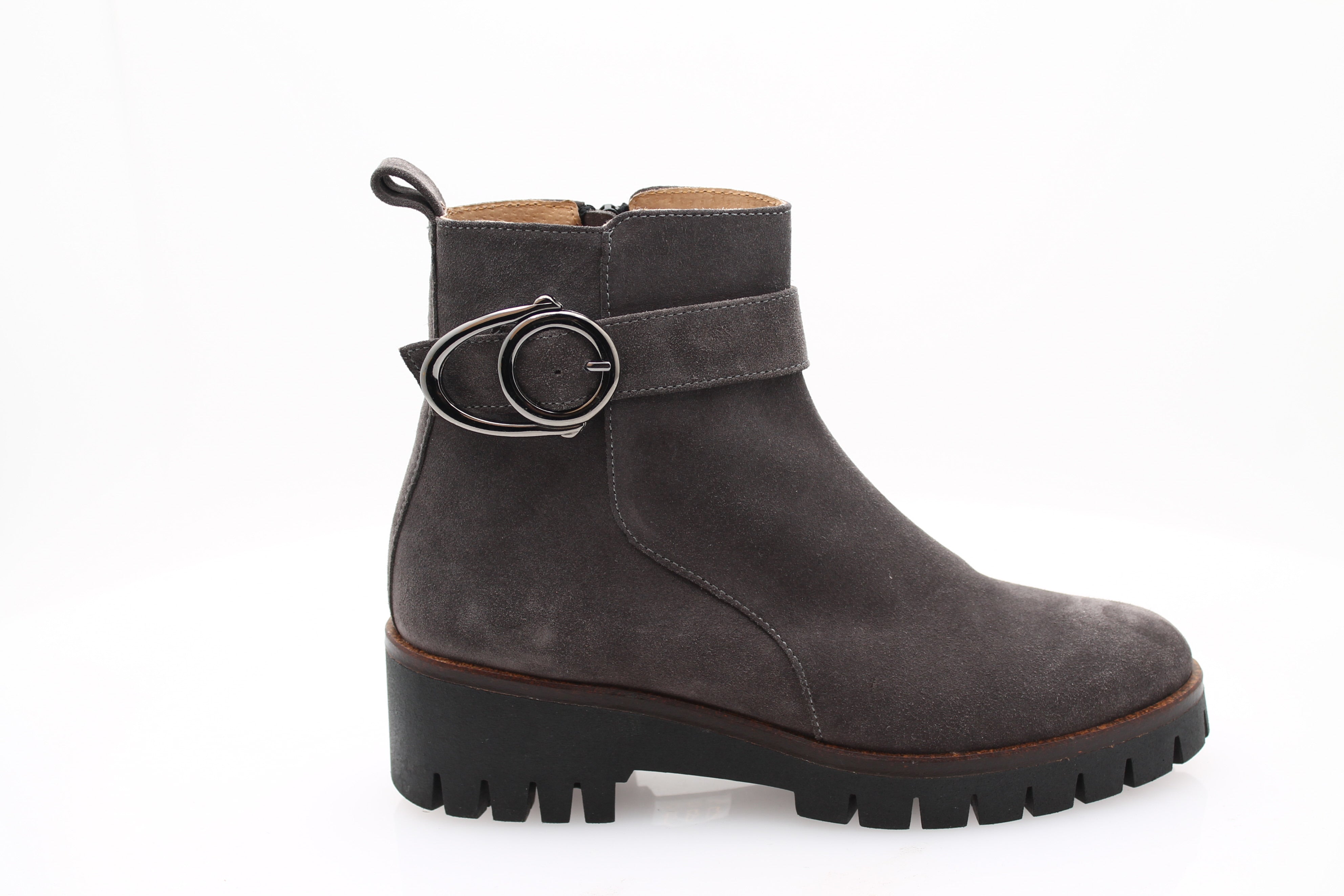 Découvrez la bottine en cuir suède EXIT AND CO - Kivalita en gris foncé.