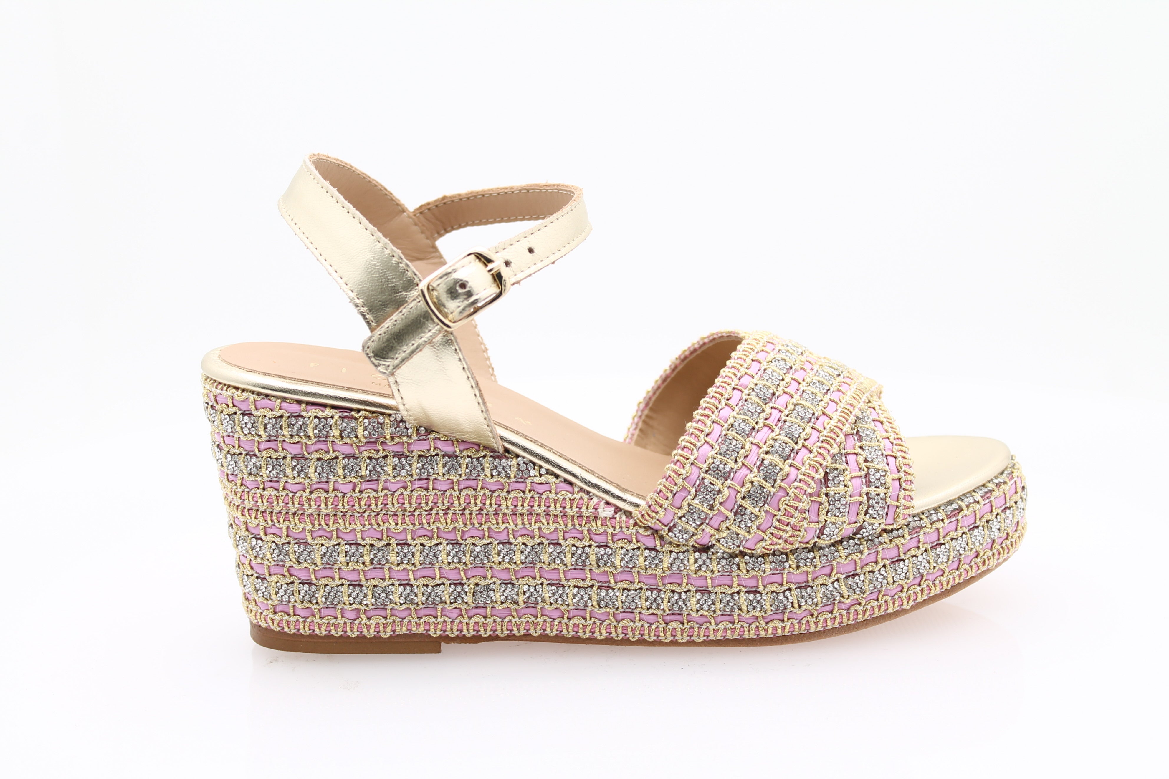 Découvrez FIORINA - la sandale à plateforme en style raphia avec des pierres rectangulaires décoratives!