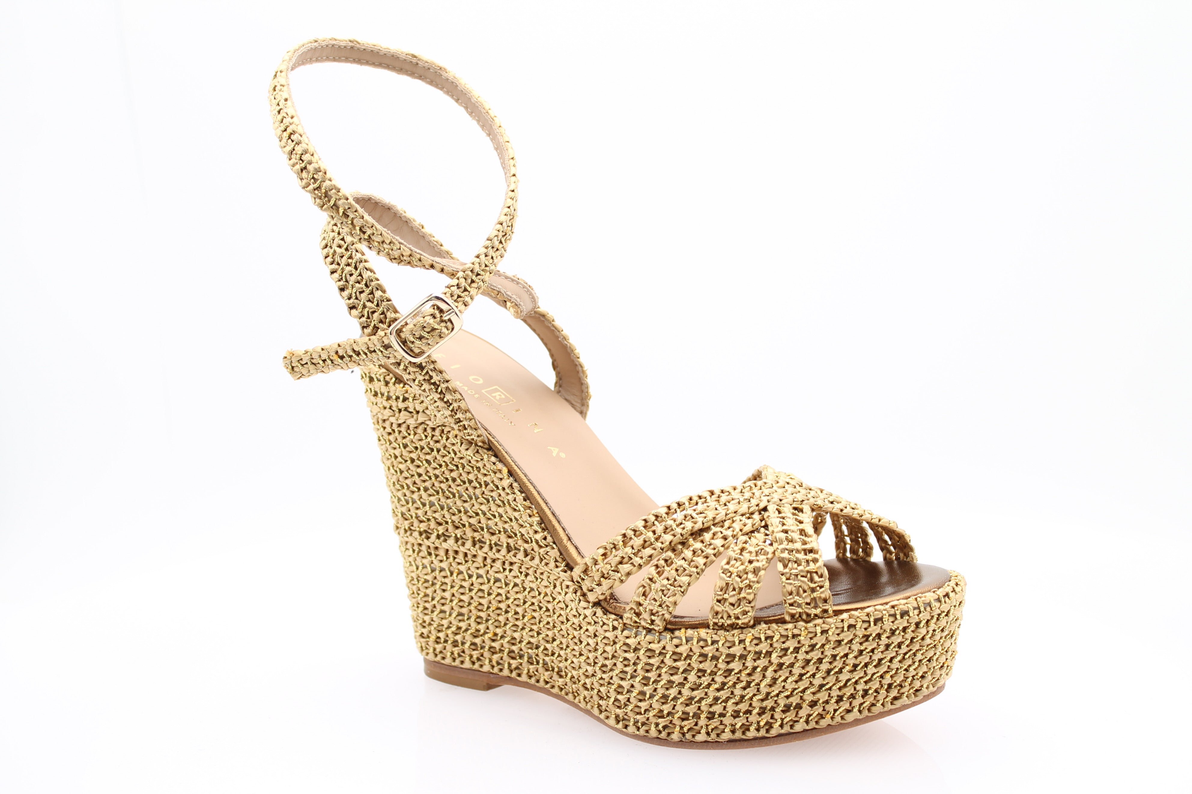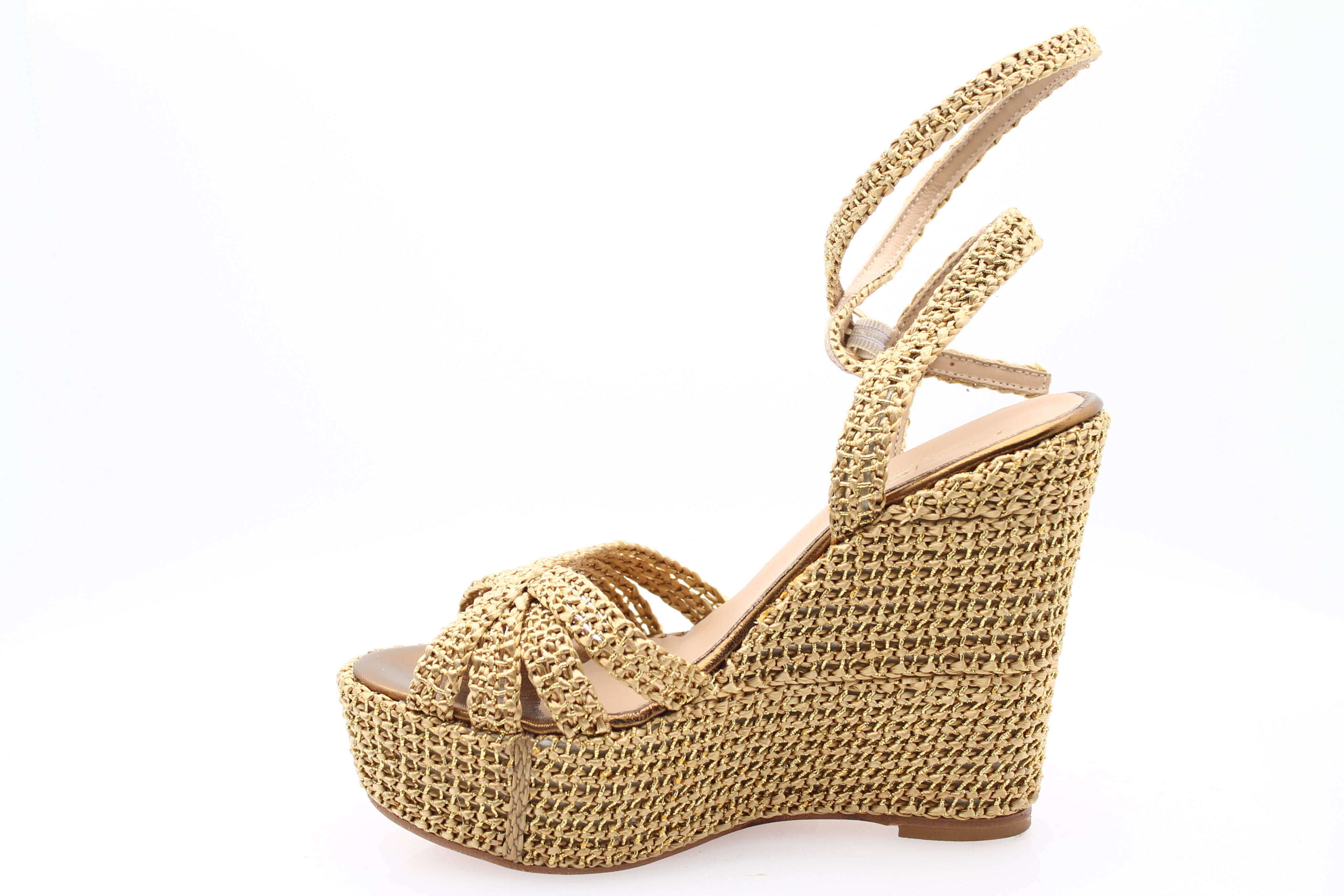 Offrez-vous un style estival élégant avec la sandale FIORINA en raphia doré/bronze.