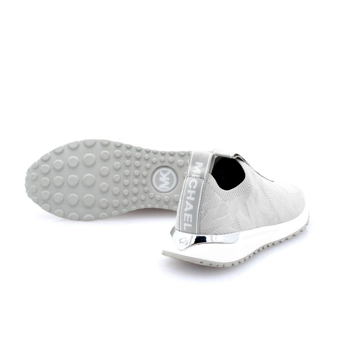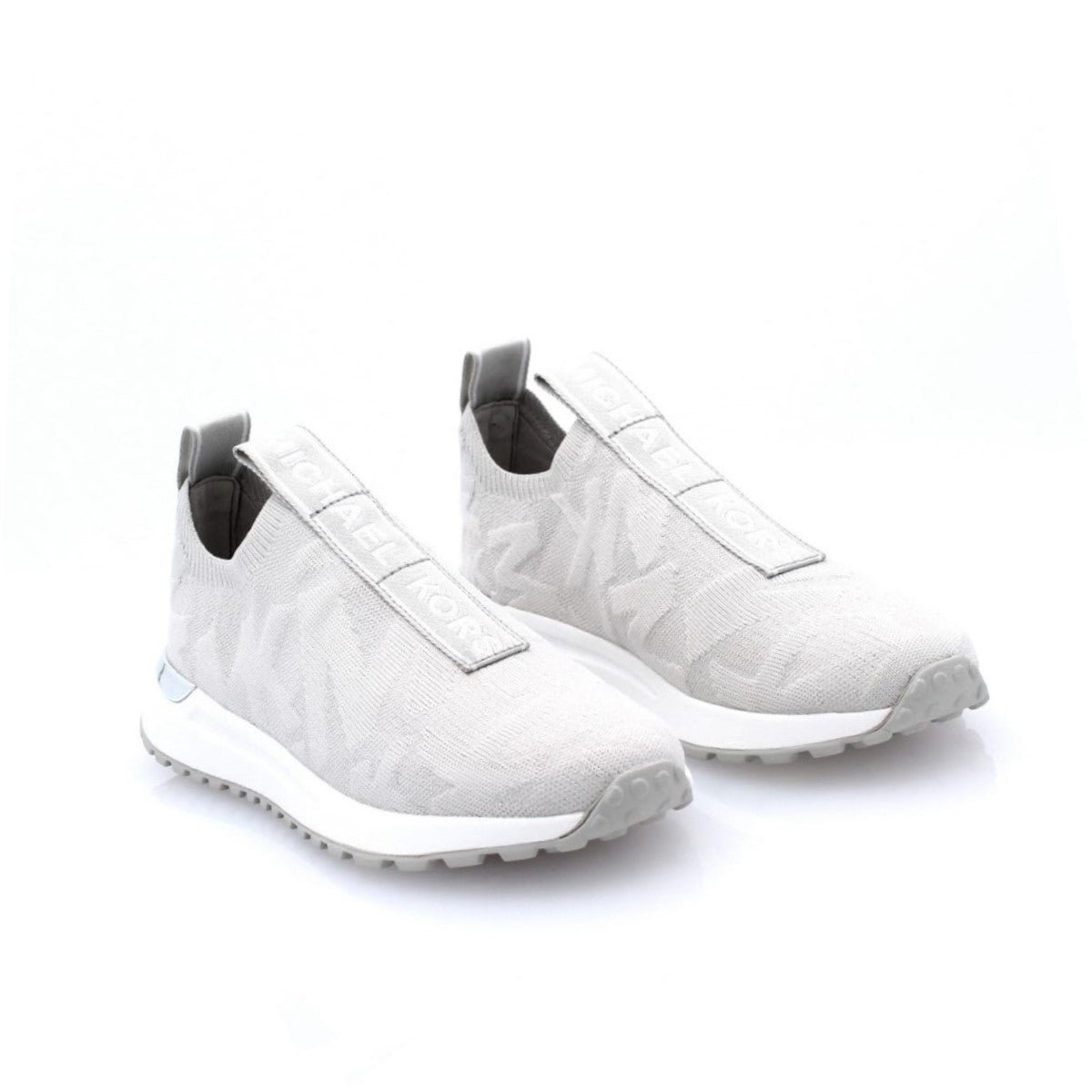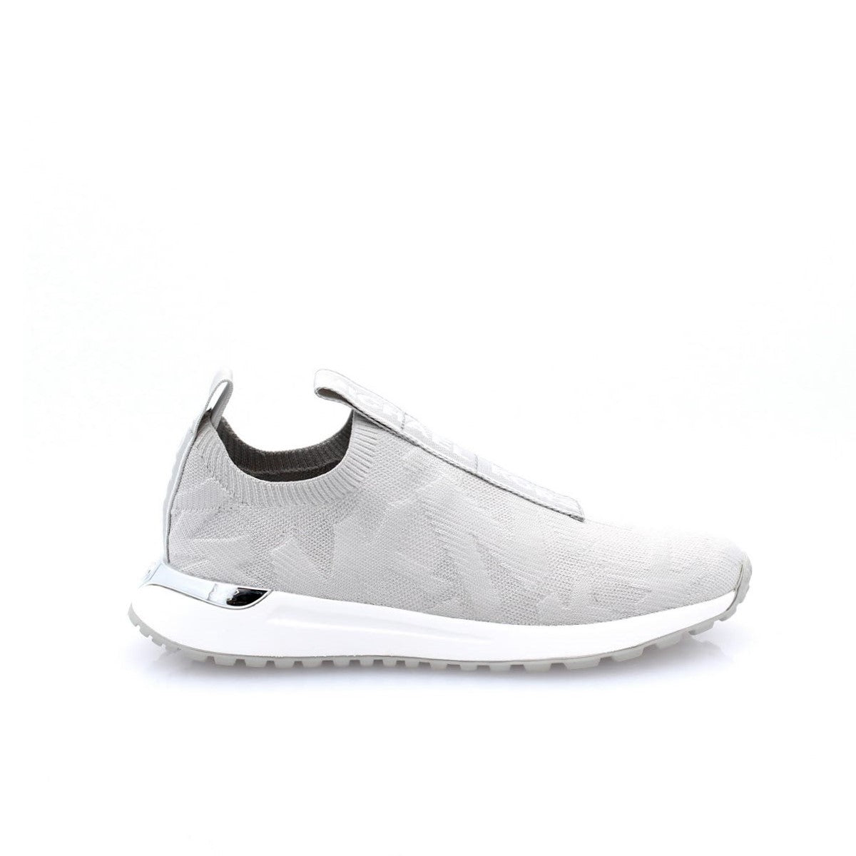 Les baskets basses pour femmes de MICHAEL KORS® sont faites en textile, avec un logo en relief en tissu gris aluminium. La languette d'enfilage au talon et la semelle extérieure plate en caoutchouc offrent confort et adhérence, tandis que la couleur gris ajoute une touche élégante à votre style.