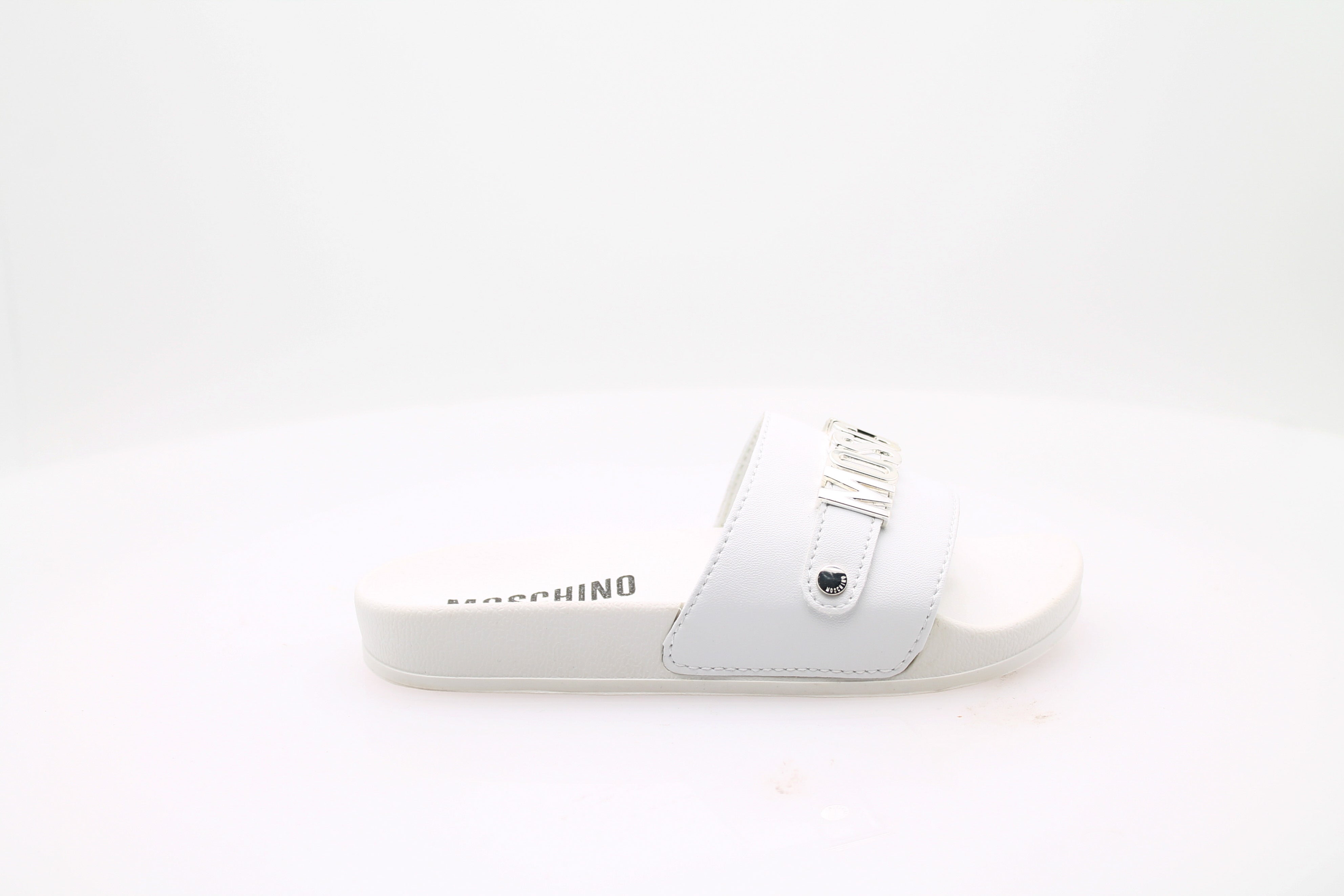 Les claquettes Moschino Sprint blanches incarnent parfaitement l’alliance entre simplicité et style. Leur structure en caoutchouc assure une allure moderne et décontractée, idéale pour compléter une tenue estivale. La bride ornée du logo Moschino argenté apporte une touche distinctive et souligne l’identité prestigieuse de la marque. Avec leur silhouette épurée et leur finition haut de gamme, elles s’imposent comme un choix élégant et polyvalent.