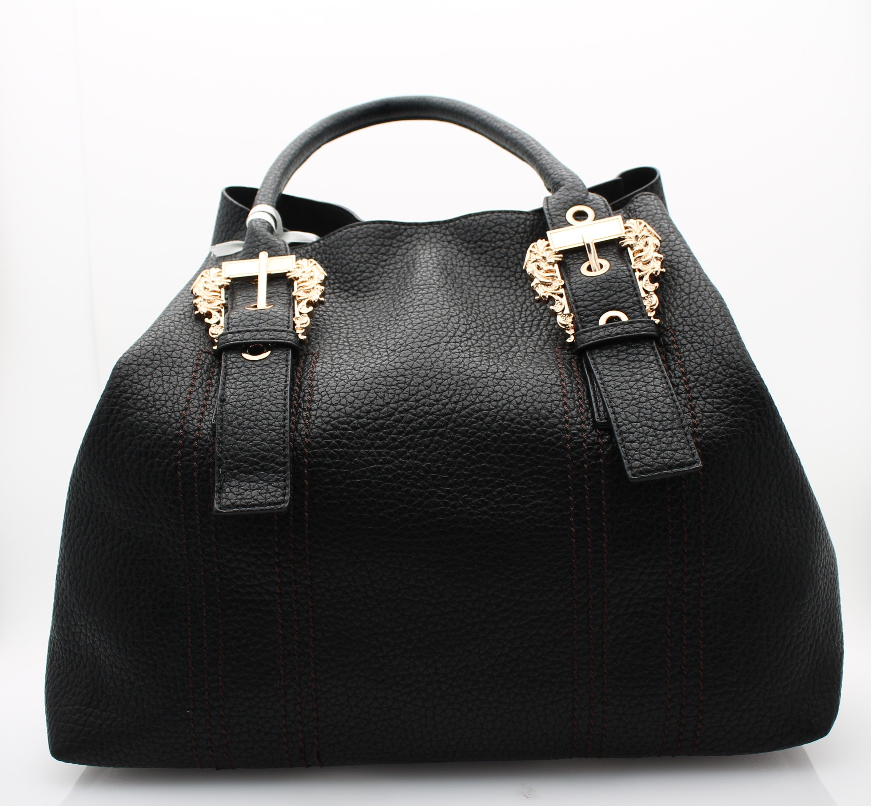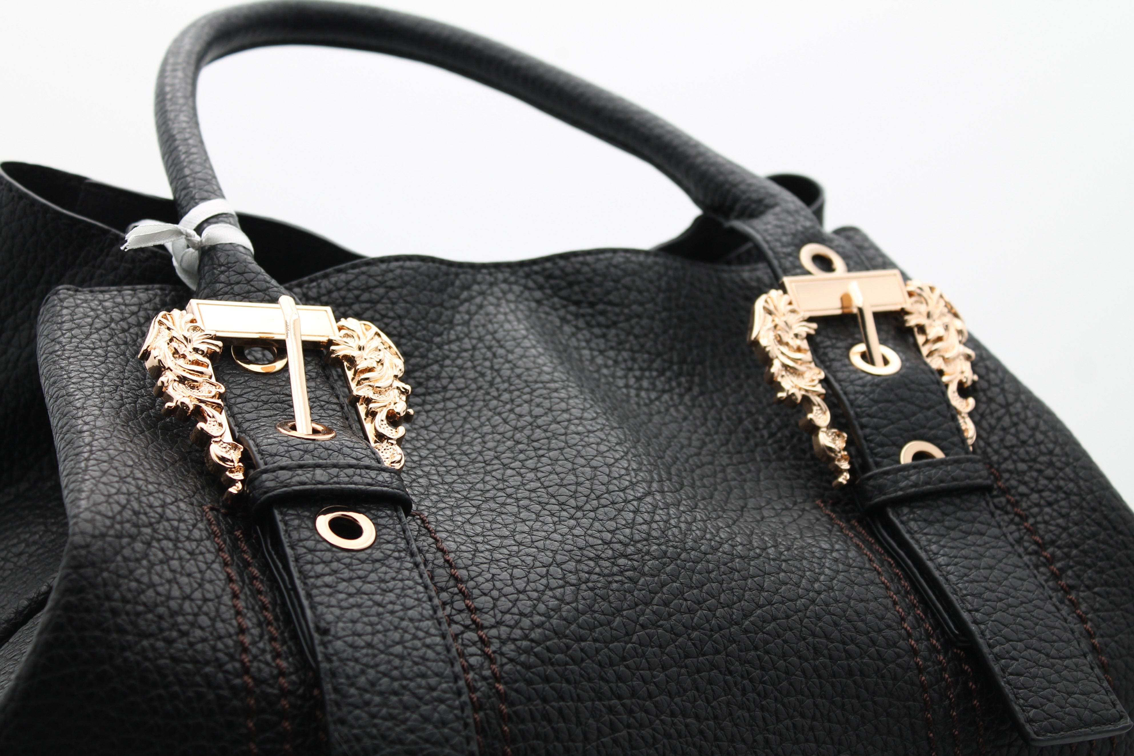 La fermeture à bouton aimanté garantit un accès rapide et sécurisé à vos essentiels, tandis que les deux boucles dorées décorantes apportent une touche sophistiquée et lumineuse à l'ensemble. Avec une longueur de 39,5 cm et une largeur de 33 cm, ce sac offre un espace généreux pour transporter vos indispensables tout en conservant une allure élégante et structurée.