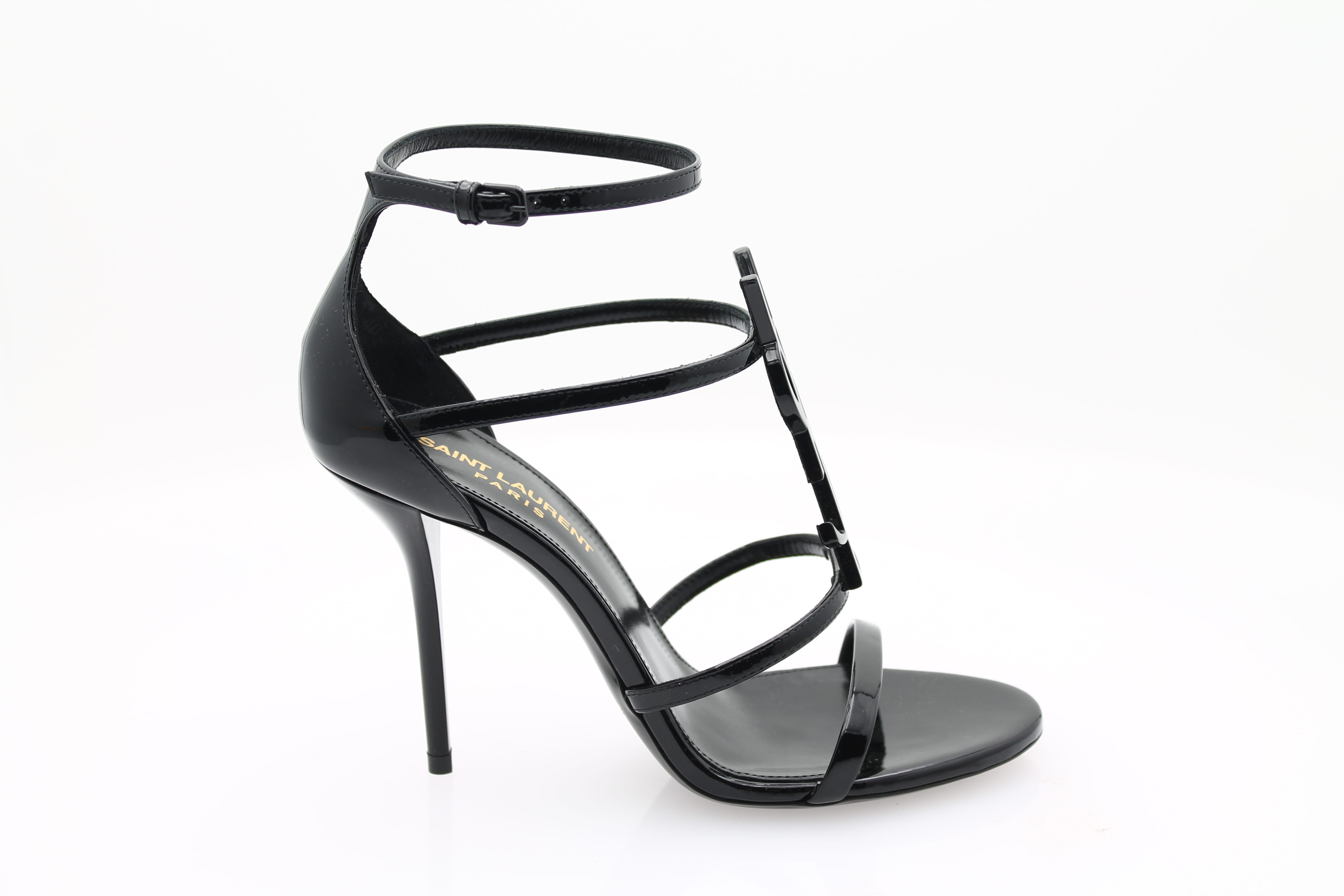Les sandales Cassandra de Yves Saint Laurent en cuir noir se distinguent par leur design chic et sophistiqué.