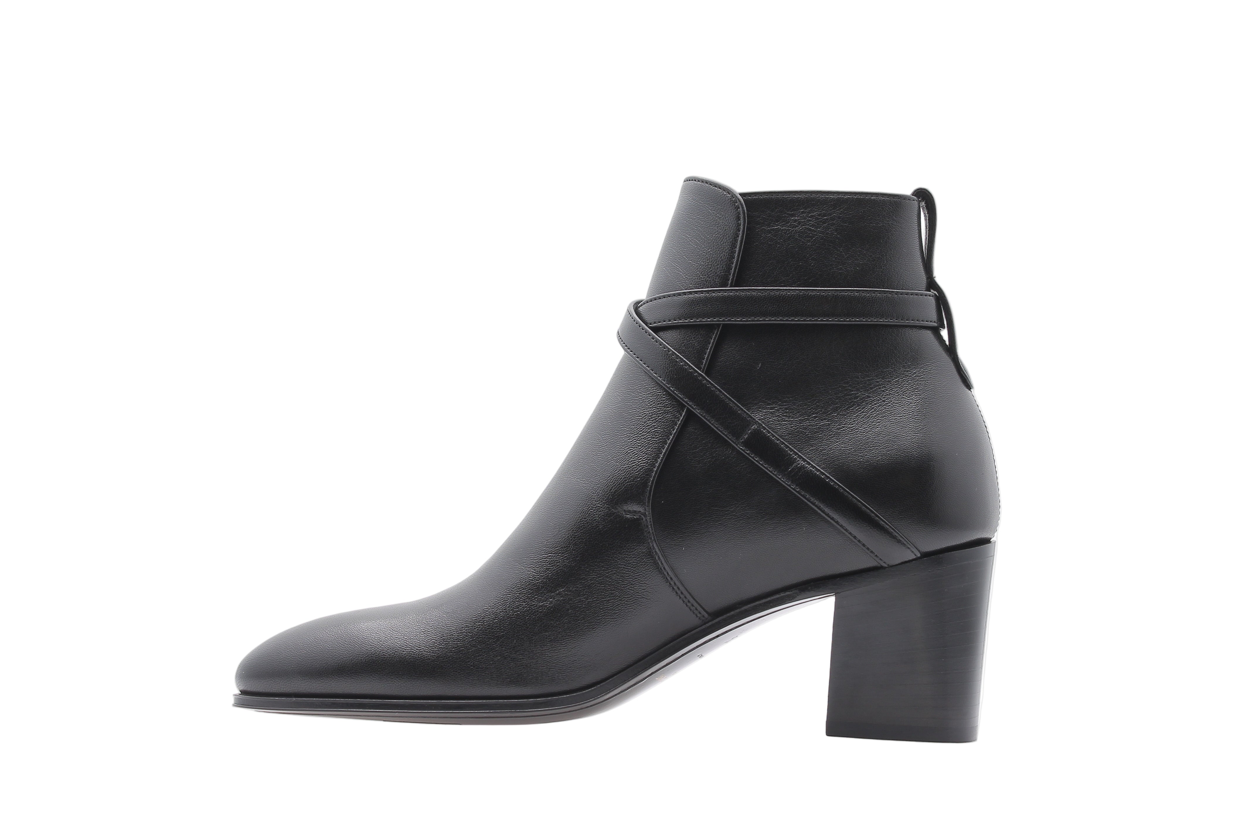 Conçue pour un enfilage sans effort, cette bottine à la finition pull-on est dotée d'une tirette au talon, garantissant maintien et facilité d’usage. La doublure en cuir assure un confort optimal, tandis que les boucles ajustables offrent un ajustement parfait. Chaque détail, de la couture délicate à la qualité des finitions, reflète l'exigence stylistique de la maison.